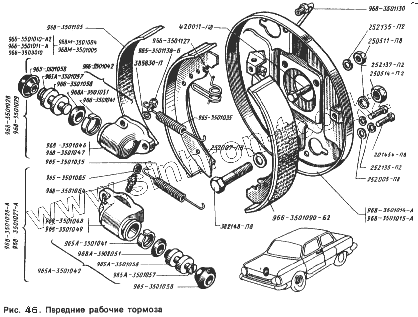 Каталог запасных частей к технике: ЗАЗ 968. Передние рабочие тормоза