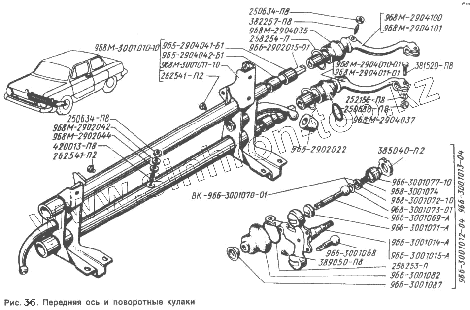 Каталог запасных частей к технике: ЗАЗ 968. Передняя ось и поворотные кулаки
