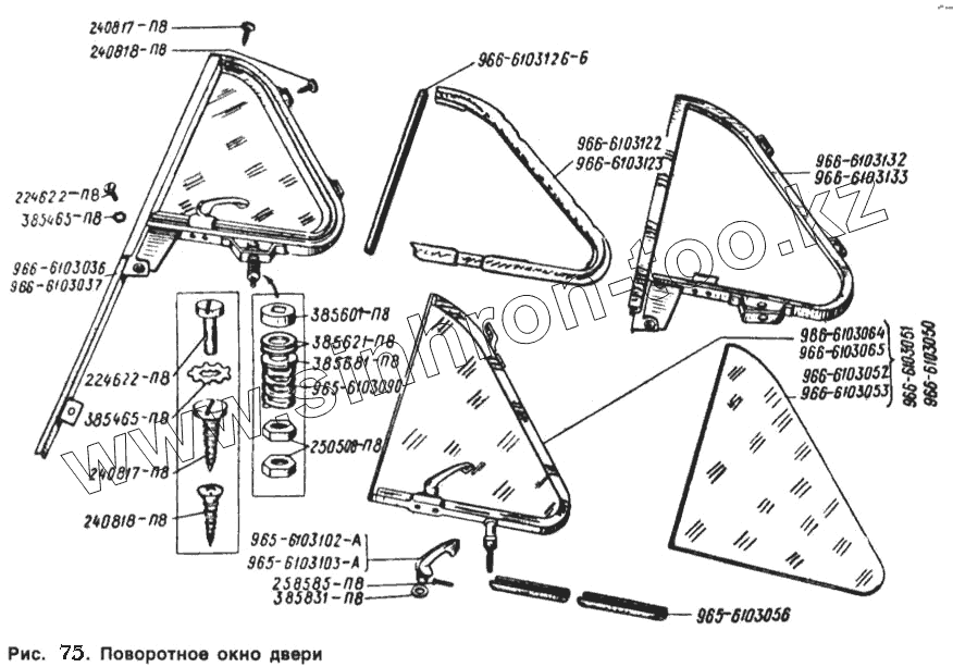Каталог запасных частей к технике: ЗАЗ 968. Поворотное окно двери