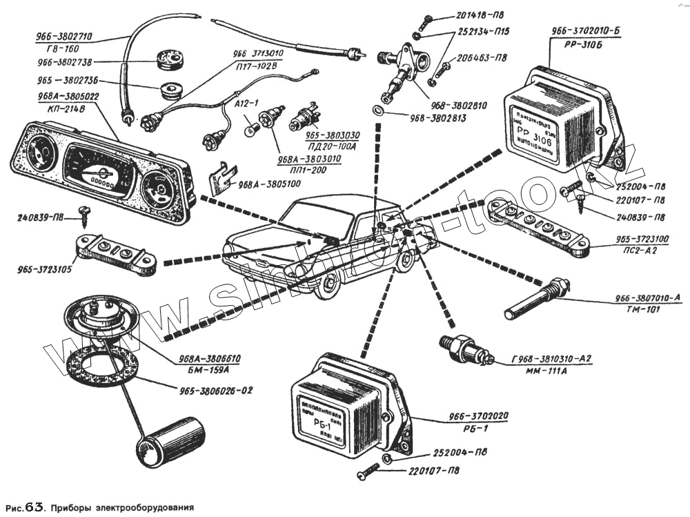 Каталог запасных частей к технике: ЗАЗ 968. Приборы электрооборудования