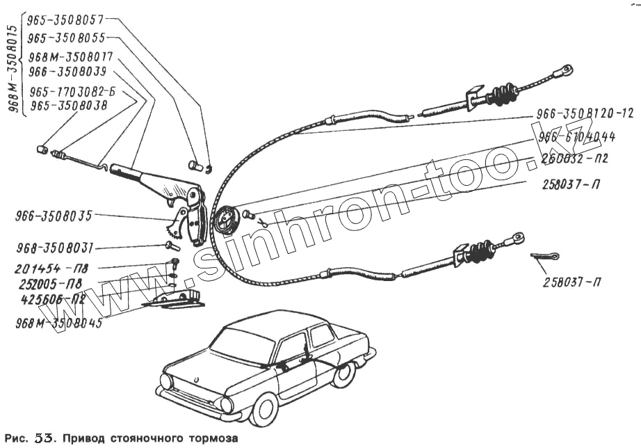 Каталог запасных частей к технике: ЗАЗ 968. Привод стояночного тормоза