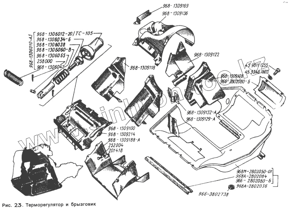 Каталог запасных частей к технике: ЗАЗ 968. Терморегулятор и брызговик