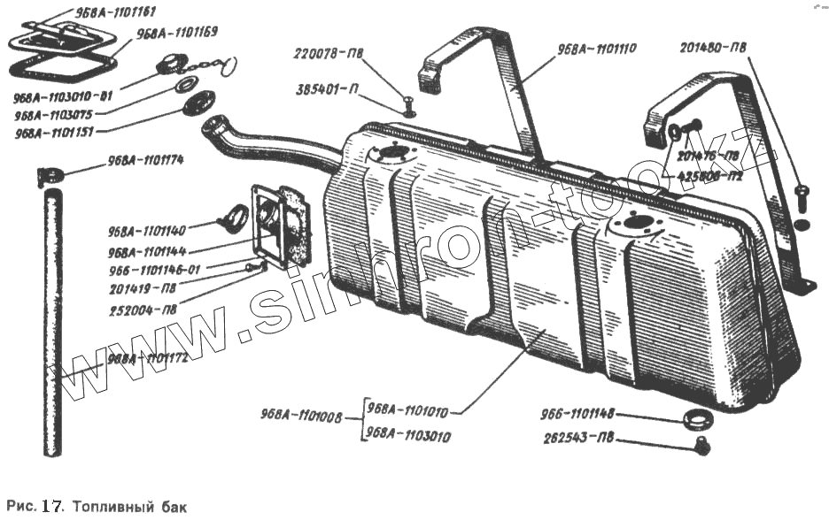 Каталог запасных частей к технике: ЗАЗ 968. Топливный бак
