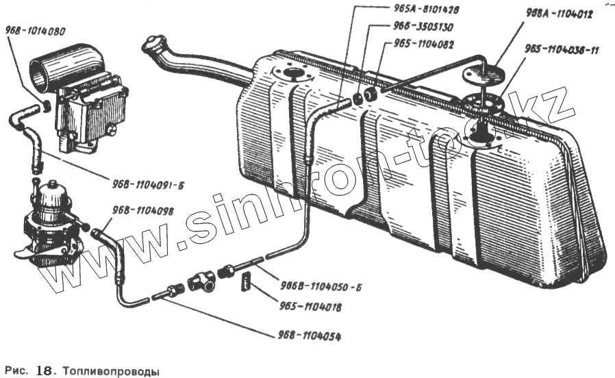 Каталог запасных частей к технике: ЗАЗ 968. Топливопроводы