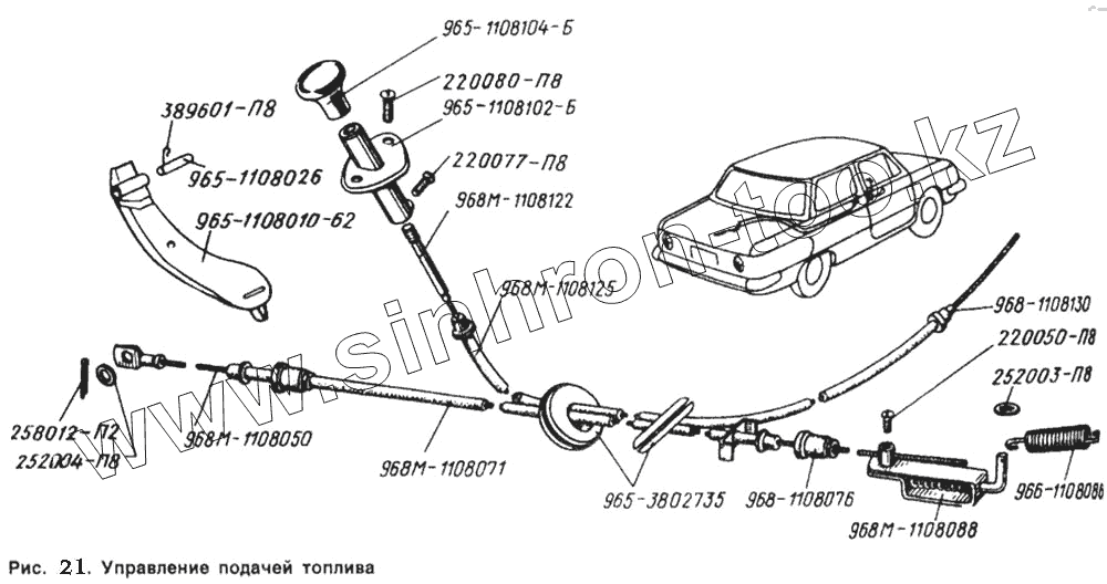 Каталог запасных частей к технике: ЗАЗ 968. Управление подачей топлива