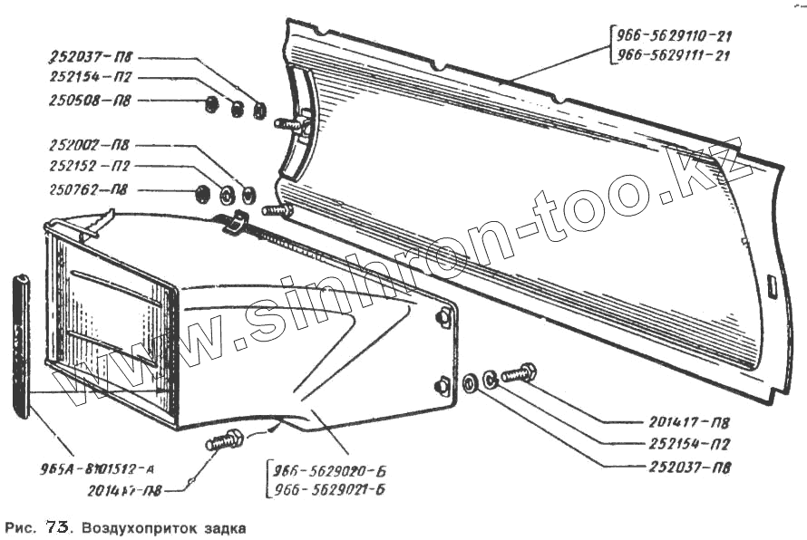 Каталог запасных частей к технике: ЗАЗ 968. Воздухоприток задка