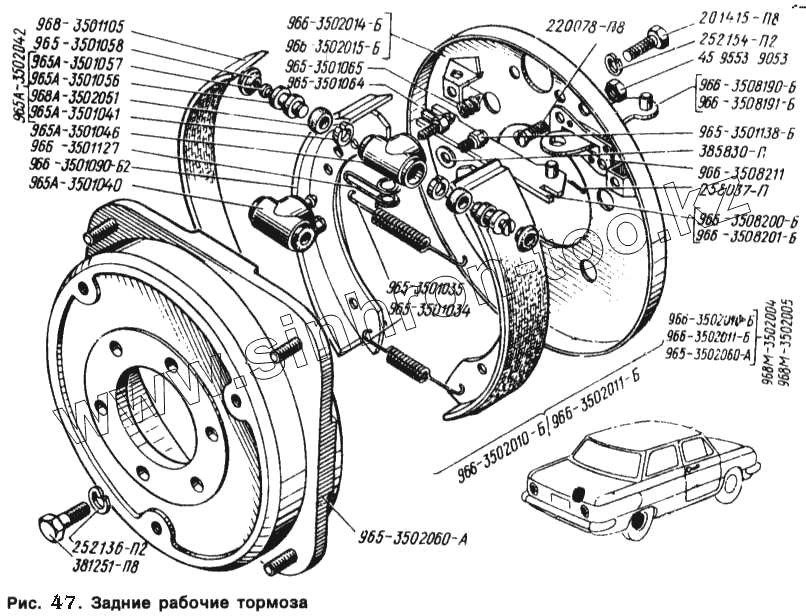 Каталог запасных частей к технике: ЗАЗ 968. Задние рабочие тормоза