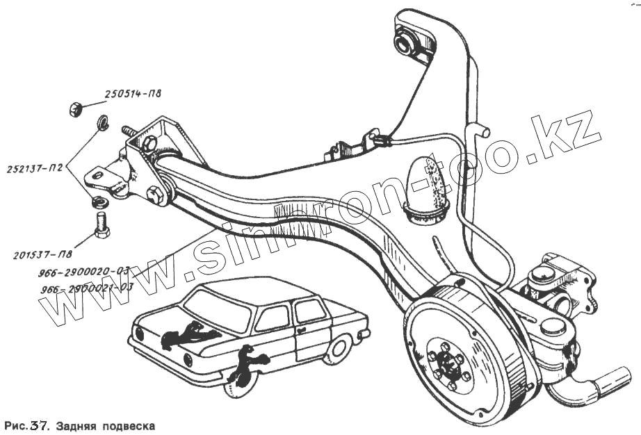 Каталог запасных частей к технике: ЗАЗ 968. Задняя подвеска