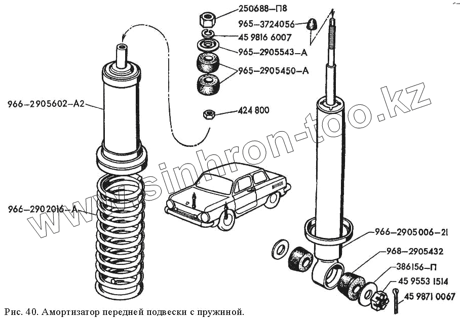 Каталог запасных частей к технике: ЗАЗ 968М. Амортизатор передней подвески с пружиной