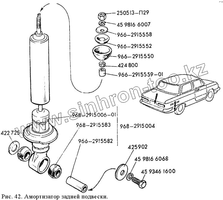 Каталог запасных частей к технике: ЗАЗ 968М. Амортизатор задней подвески