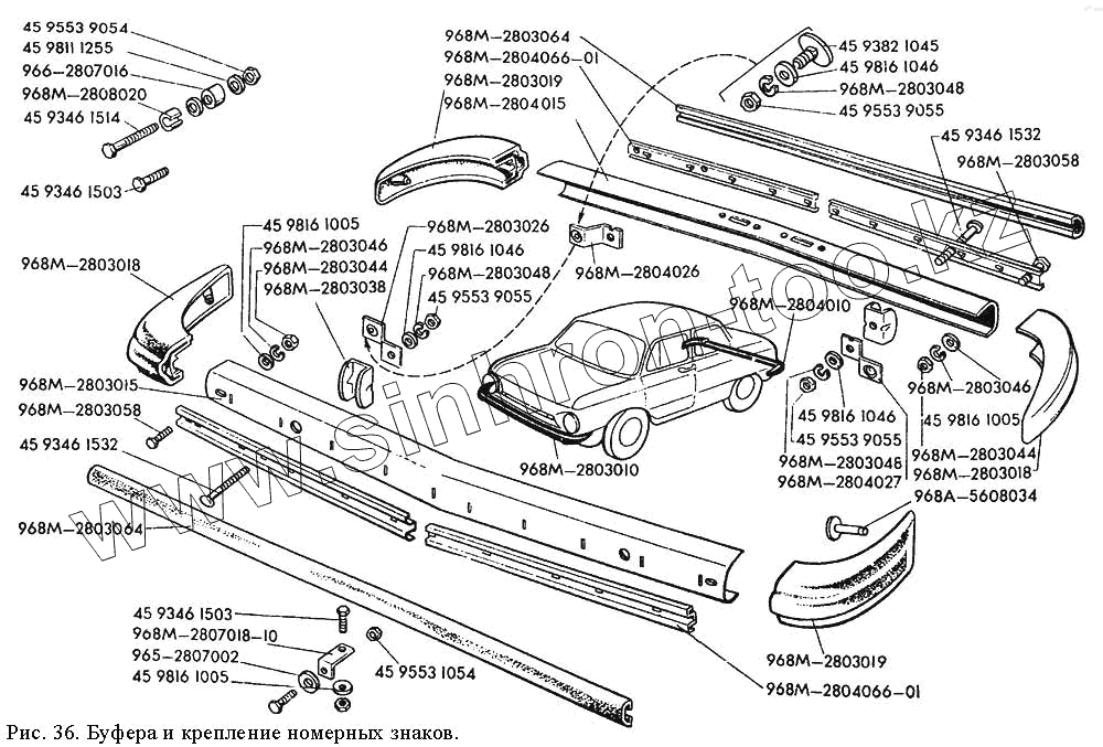 Каталог запасных частей к технике: ЗАЗ 968М. Буфера и крепление номерных знаков