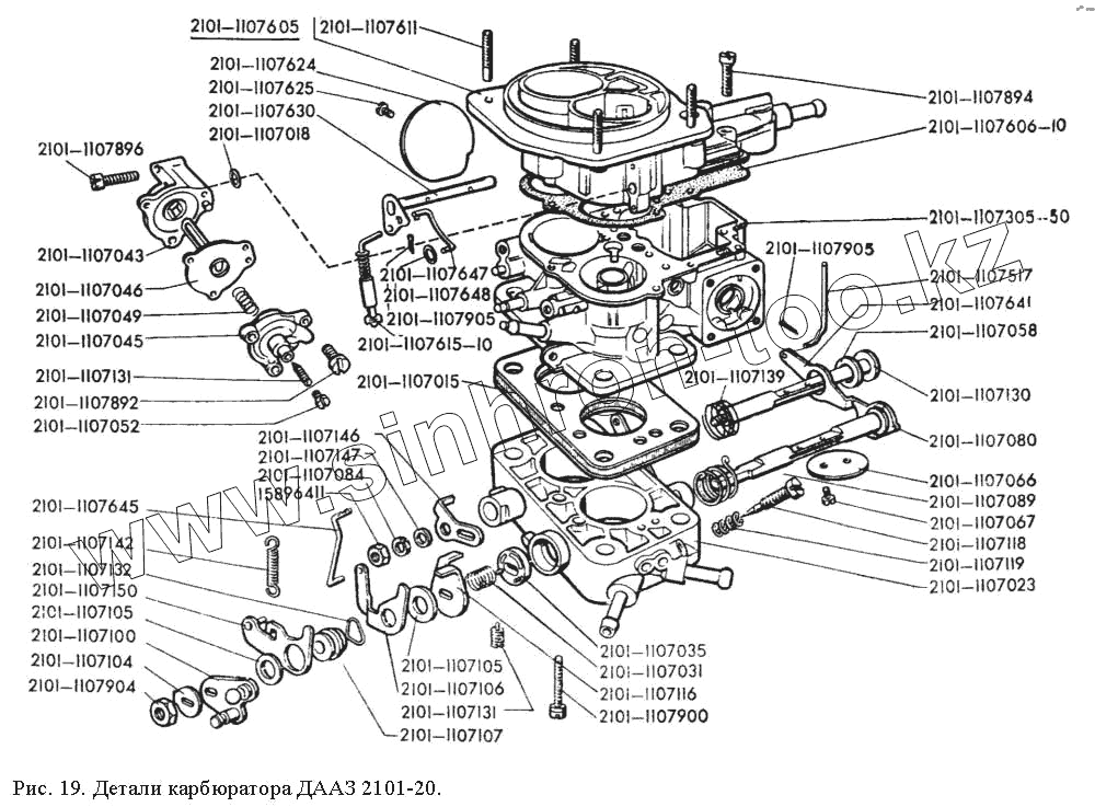 Каталог запасных частей к технике: ЗАЗ 968М. Детали карбюратора ДААЗ-2101-20