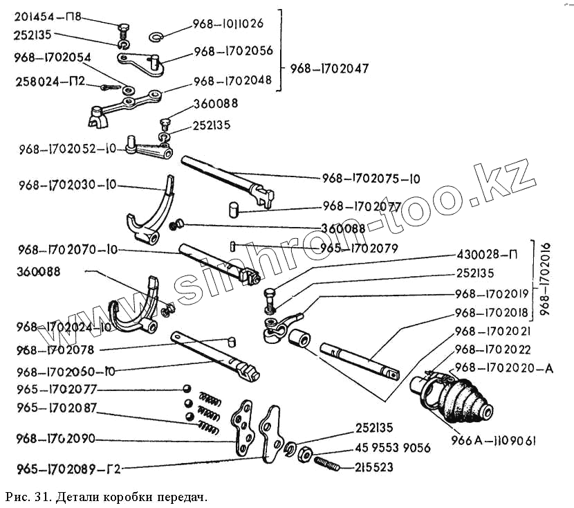 Каталог запасных частей к технике: ЗАЗ 968М. Детали коробки передач