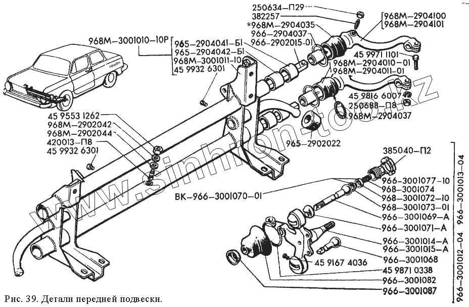 Каталог запасных частей к технике: ЗАЗ 968М. Детали передней подвески