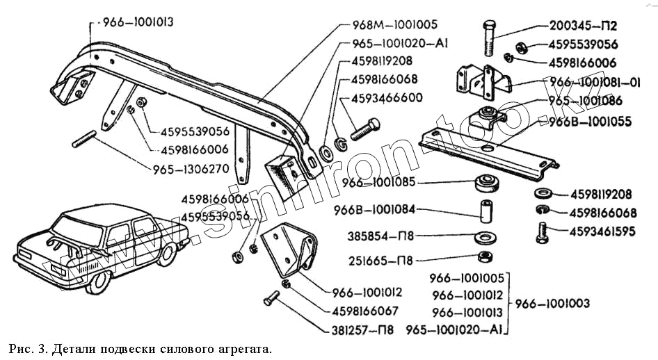 Каталог запасных частей к технике: ЗАЗ 968М. Детали подвески силового агрегата