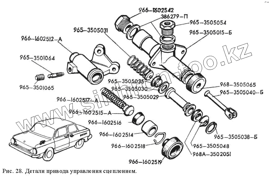 Каталог запасных частей к технике: ЗАЗ 968М. Детали привода управления сцеплением