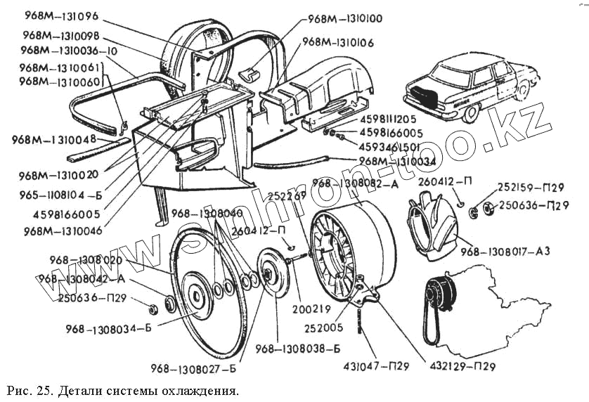Каталог запасных частей к технике: ЗАЗ 968М. Детали системы охлаждения
