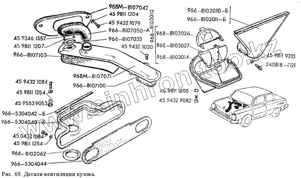 Каталог запасных частей к технике: ЗАЗ 968М. Детали вентиляции кузова