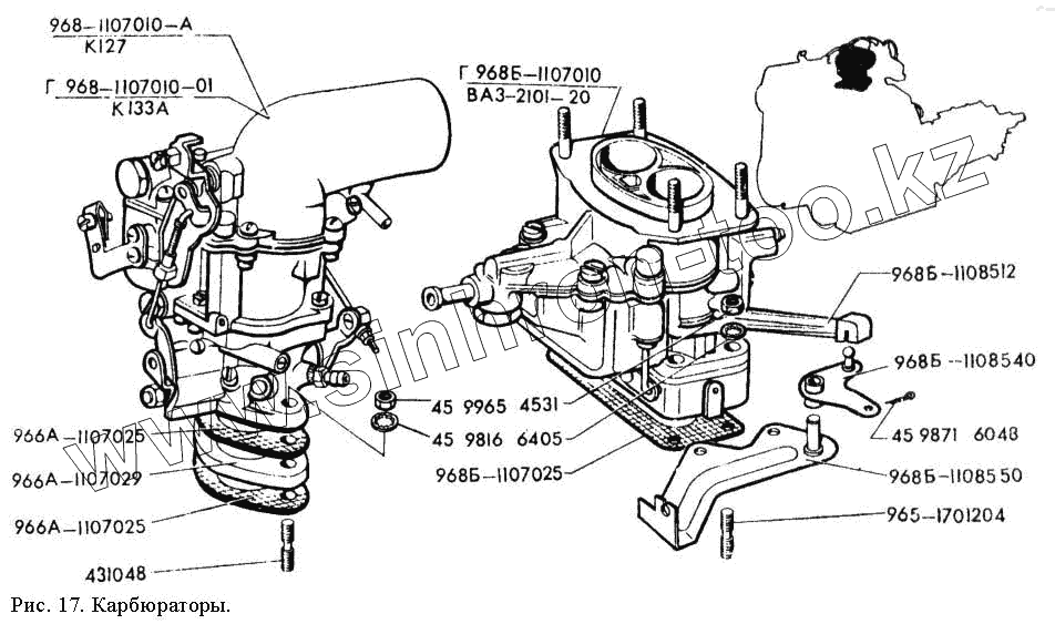 | Г968Б-1107010 ВАЗ-2101-20 | Г968Б-1107010 ВАЗ-2101-20 | Карбюратор в сборе (для двигателя 45 л.с.) | |