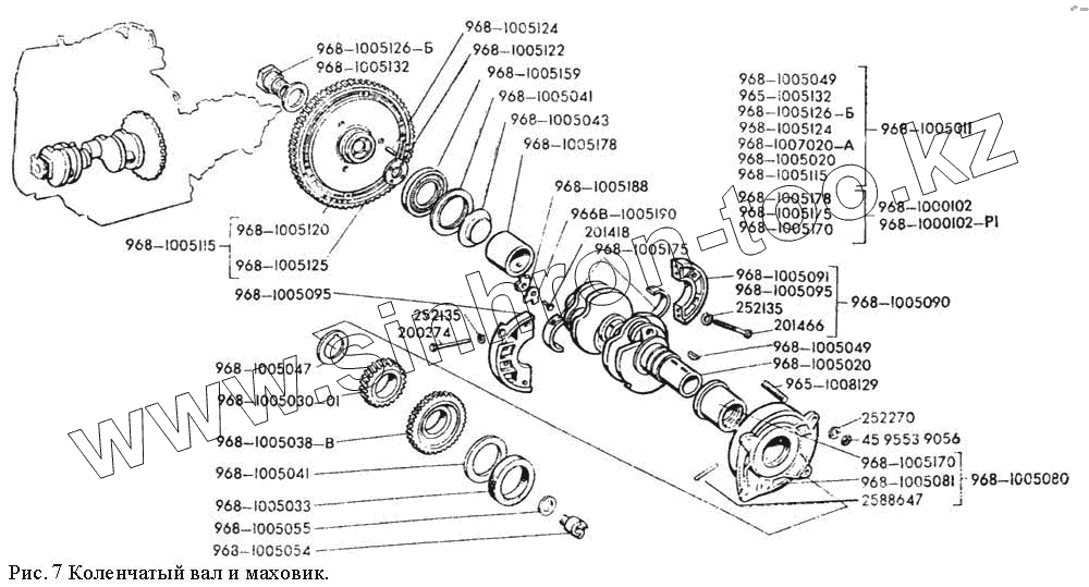 Каталог запасных частей к технике: ЗАЗ 968М. Коленчатый вал и маховик
