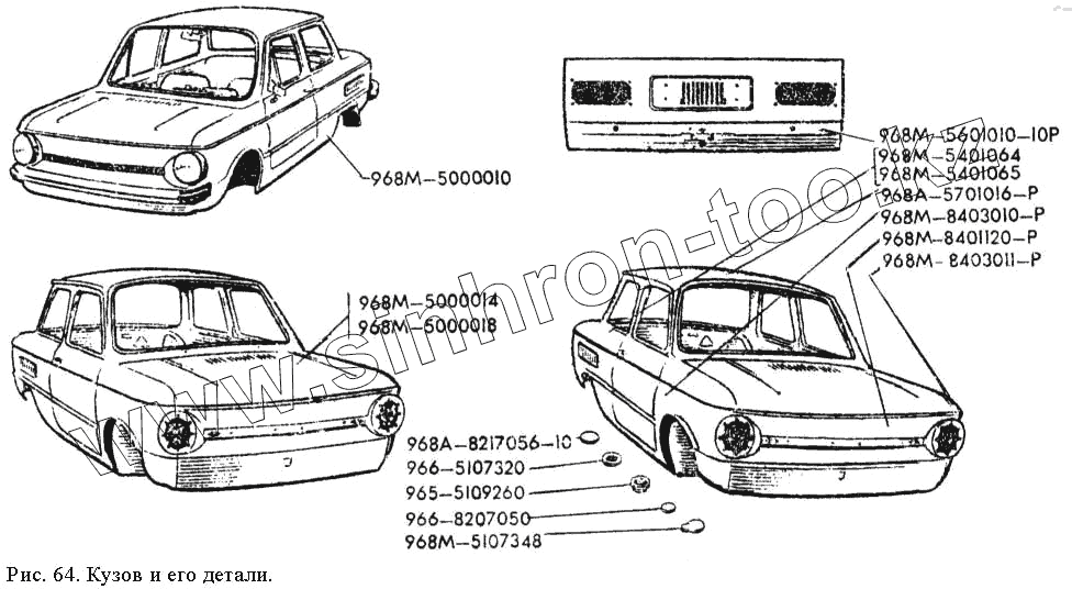 Каталог запасных частей к технике: ЗАЗ 968М. Кузов и его детали