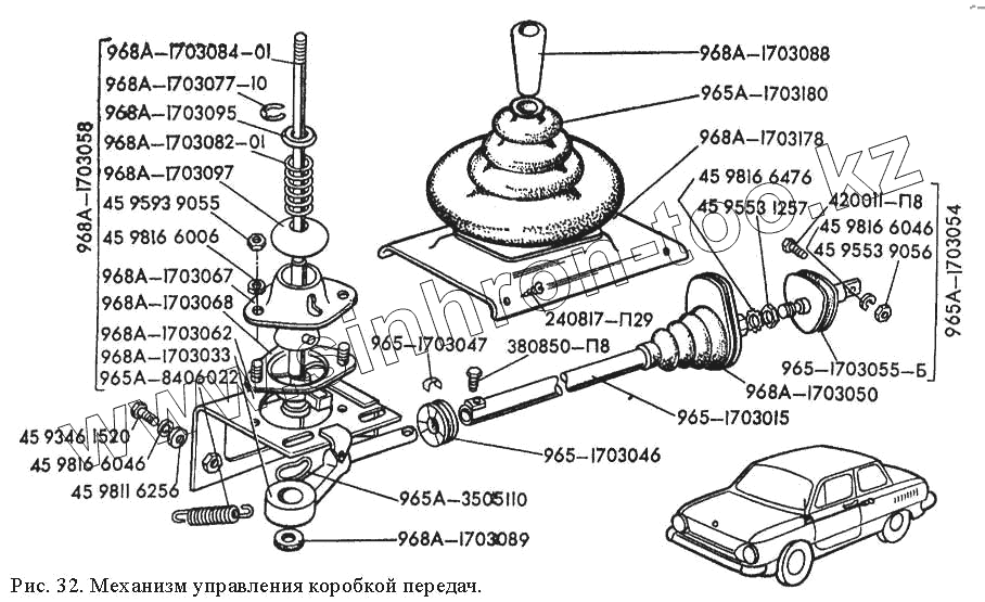 Каталог запасных частей к технике: ЗАЗ 968М. Механизм управления коробкой передач