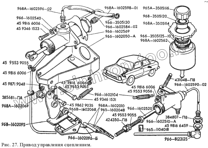 Каталог запасных частей к технике: ЗАЗ 968М. Привод управления сцеплением