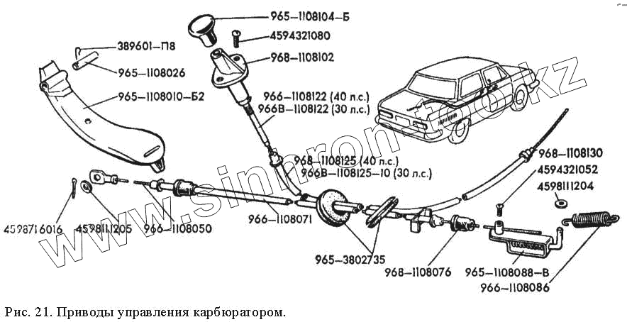 Каталог запасных частей к технике: ЗАЗ 968М. Приводы управления карбюратором