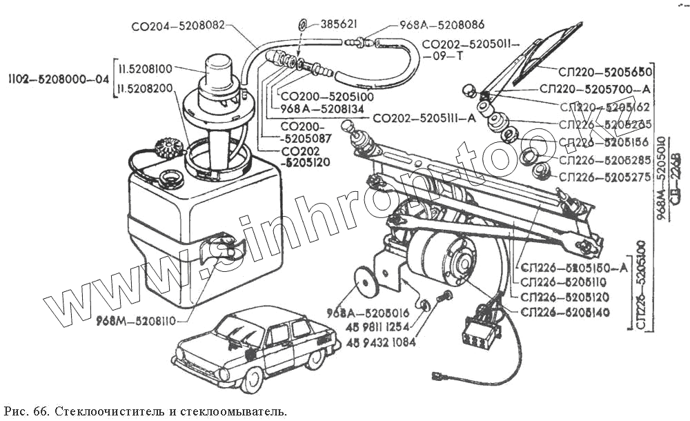 Каталог запасных частей к технике: ЗАЗ 968М. Стеклоочиститель и стеклоомыватель