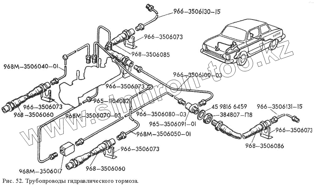 Каталог запасных частей к технике: ЗАЗ 968М. Трубопроводы гидравлического тормоза