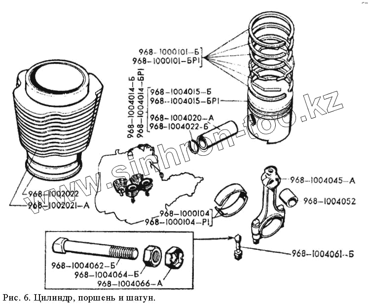 Каталог запасных частей к технике: ЗАЗ 968М. Цилиндр, поршень и шатун