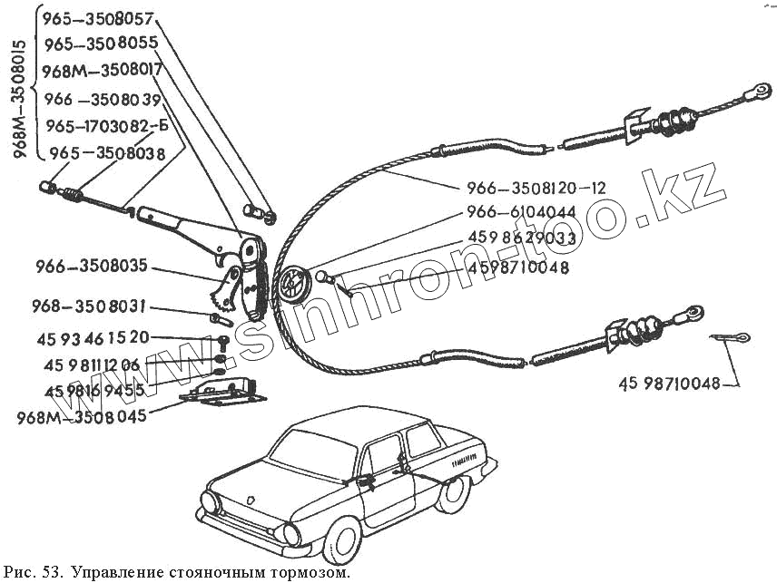 Каталог запасных частей к технике: ЗАЗ 968М. Управление стояночным тормозом