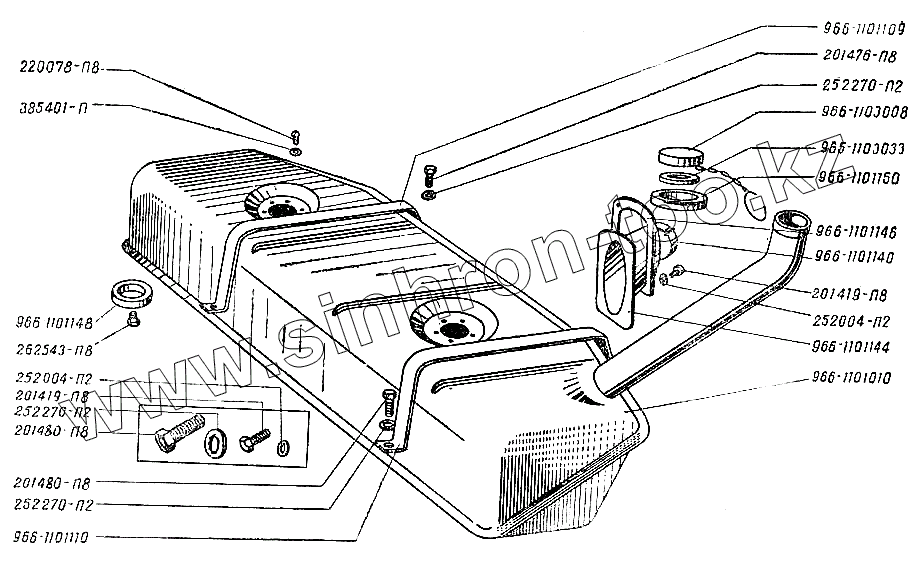 Каталог запасных частей к технике: ЗАЗ- 966, 966В. Бензиновый бак и пробка бензинового бака