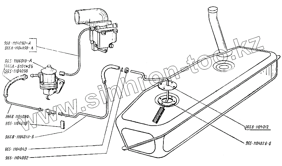 Каталог запасных частей к технике: ЗАЗ- 966, 966В. Бензопроводы