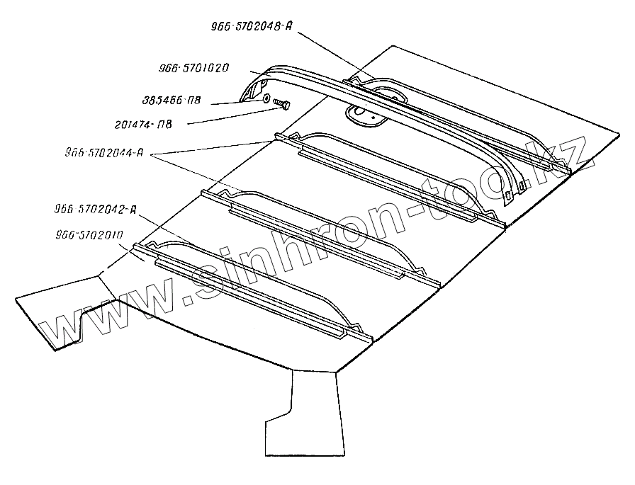 Каталог запасных частей к технике: ЗАЗ- 966, 966В. Детали крыши и обивка крыши
