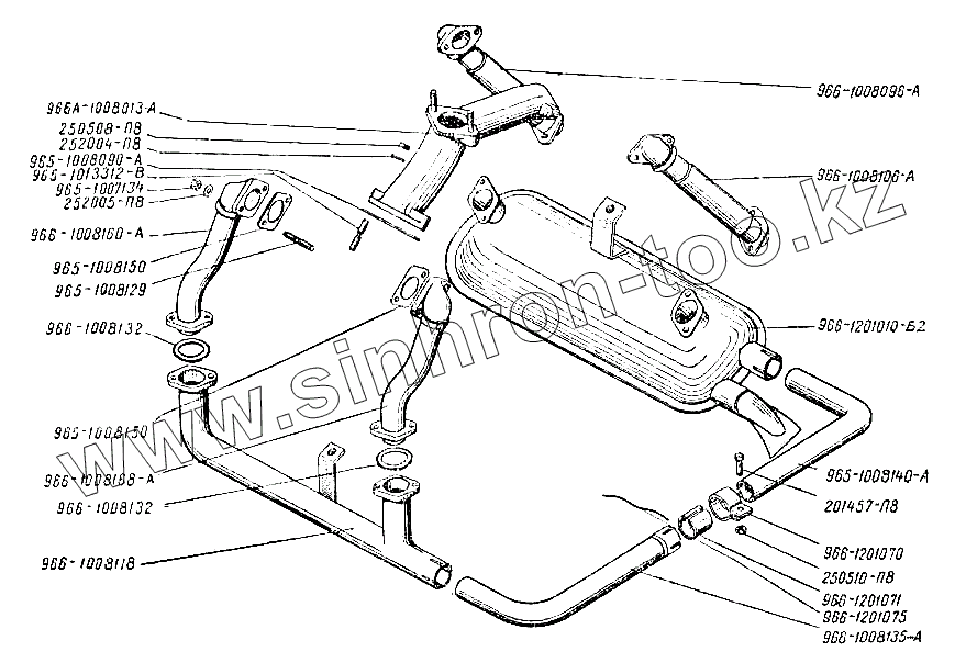 Каталог запасных частей к технике: ЗАЗ- 966, 966В. Газопровод и глушитель ЗАЗ-966В