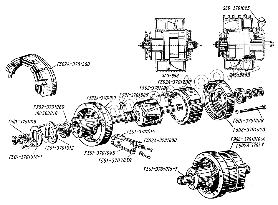 Каталог запасных частей к технике: ЗАЗ- 966, 966В. Генератор и выпрямитель