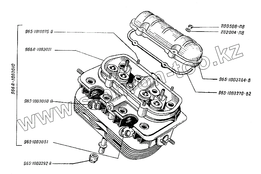 Каталог запасных частей к технике: ЗАЗ- 966, 966В. Головка цилиндров ЗАЗ-966В