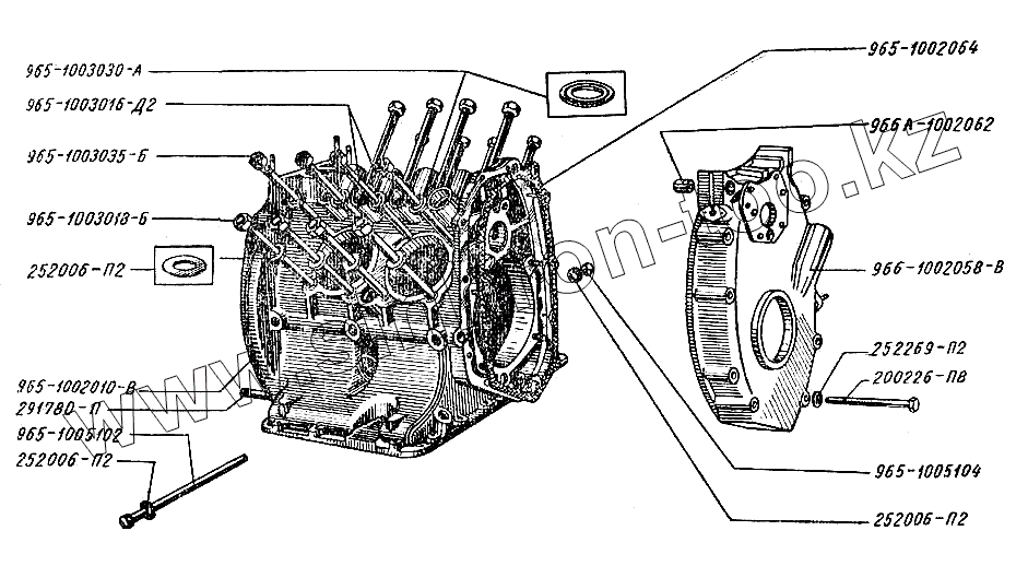 Каталог запасных частей к технике: ЗАЗ- 966, 966В. Картер коленчатого вала ЗАЗ-966В