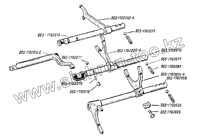 Каталог запасных частей к технике: ЗАЗ- 966, 966В. Механизм переключения передач ЗАЗ-966В