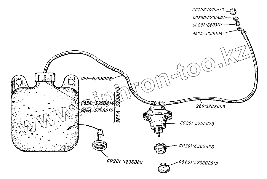 Каталог запасных частей к технике: ЗАЗ- 966, 966В. Омыватель ветрового стекла