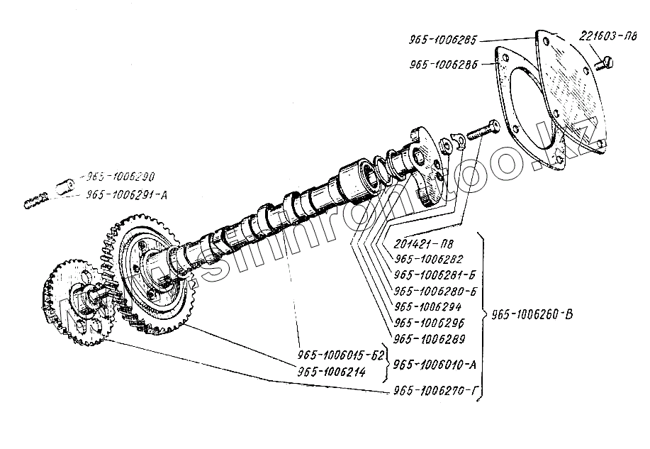 Каталог запасных частей к технике: ЗАЗ- 966, 966В. Распределительный вал ЗАЗ-966В