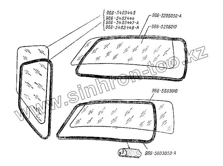 Каталог запасных частей к технике: ЗАЗ- 966, 966В. Стекла и уплотнители