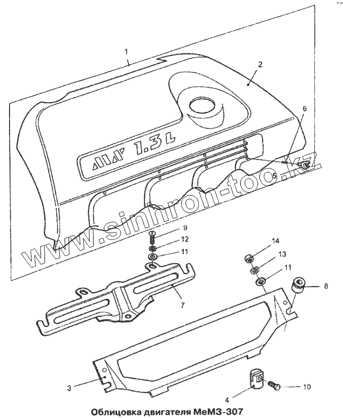 Каталог запасных частей к технике: ЗАЗ ZAZ Sens. Облицовка двигателя МеМЗ-307