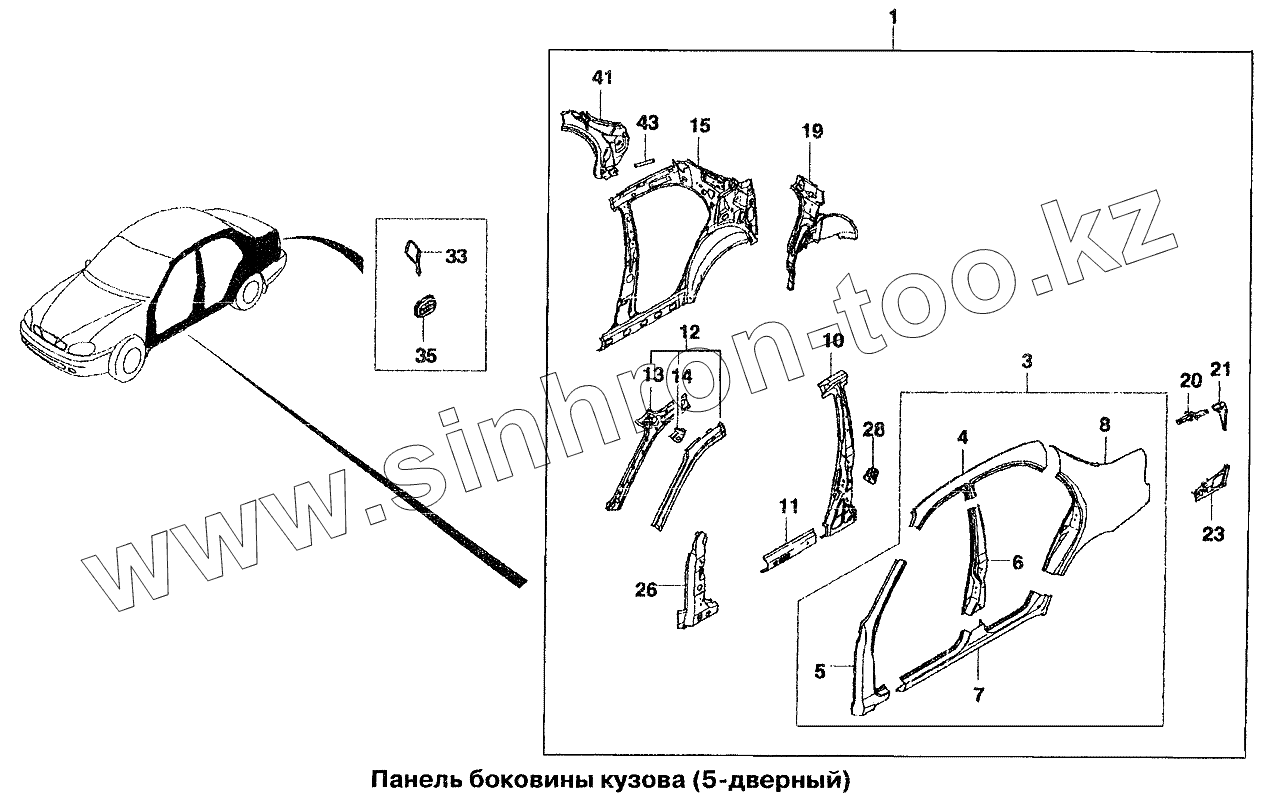 | 3 | 96307223 | Наружная боковая панель в сборе | |