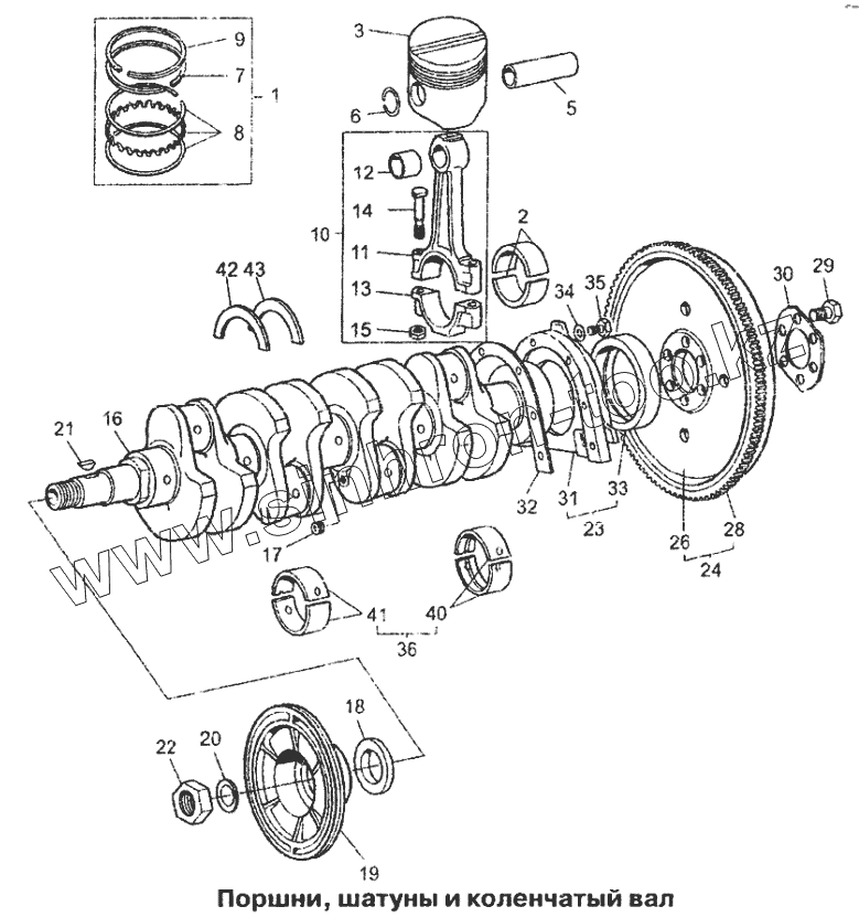 Каталог запасных частей к технике: ЗАЗ ZAZ Sens. Поршни, шатуны и коленчатый вал