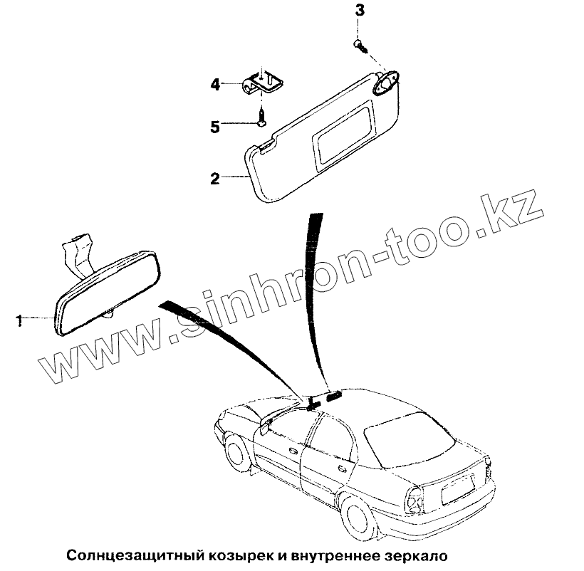 Каталог запасных частей к технике: ЗАЗ ZAZ Sens. Солнцезащитный козырек и внутреннее зеркало