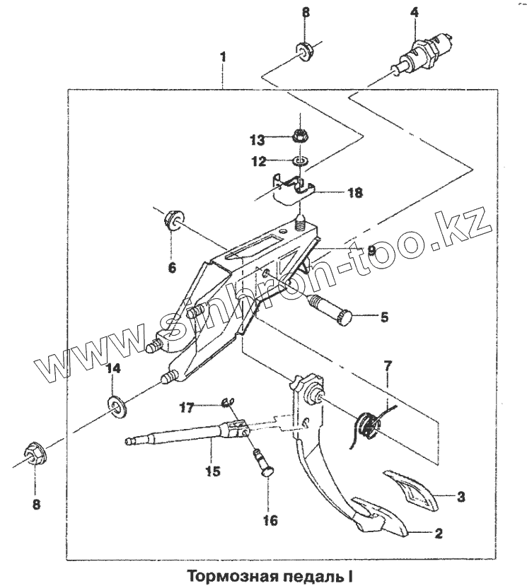 Каталог запасных частей к технике: ЗАЗ ZAZ Sens. Тормозная педаль (I)