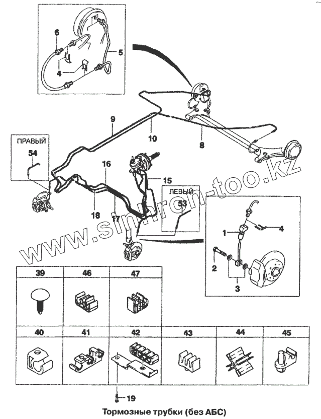 Каталог запасных частей к технике: ЗАЗ ZAZ Sens. Тормозные трубки (без АБС)