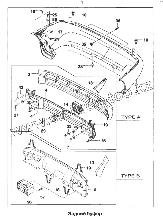 Каталог запасных частей к технике: ЗАЗ ZAZ Sens. Задний буфер I